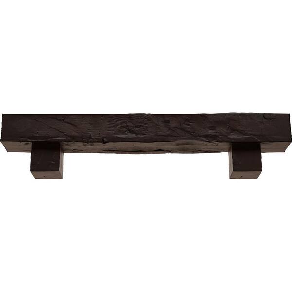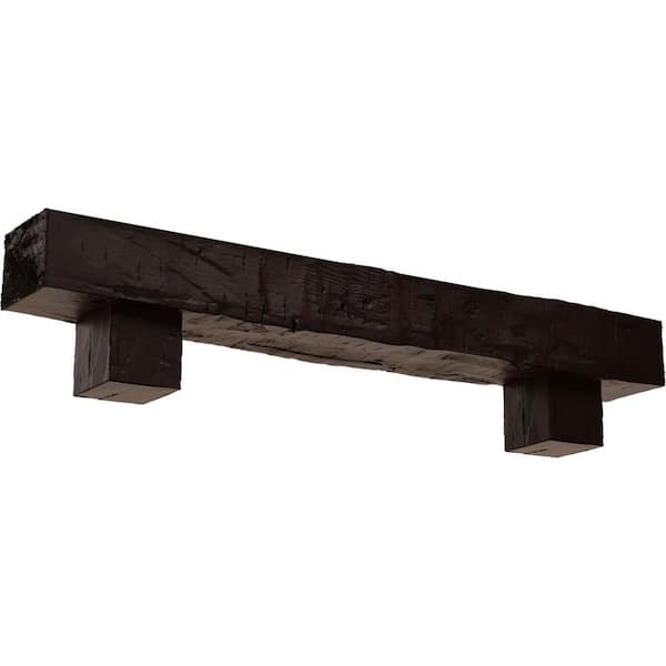 6 in. x 8 in. x 3 ft. Hand Hewn Faux Wood Fireplace Mantel Kit, Alamo Corbels, Premium Mahogany