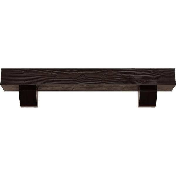 6 in. x 8 in. x 3 ft. Sandblasted Faux Wood Fireplace Mantel Kit, Ashford Corbels, Premium Mahogany