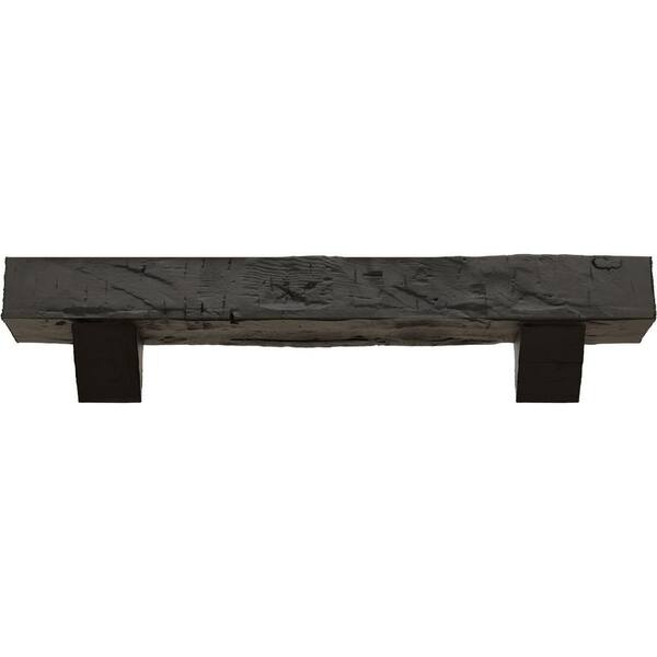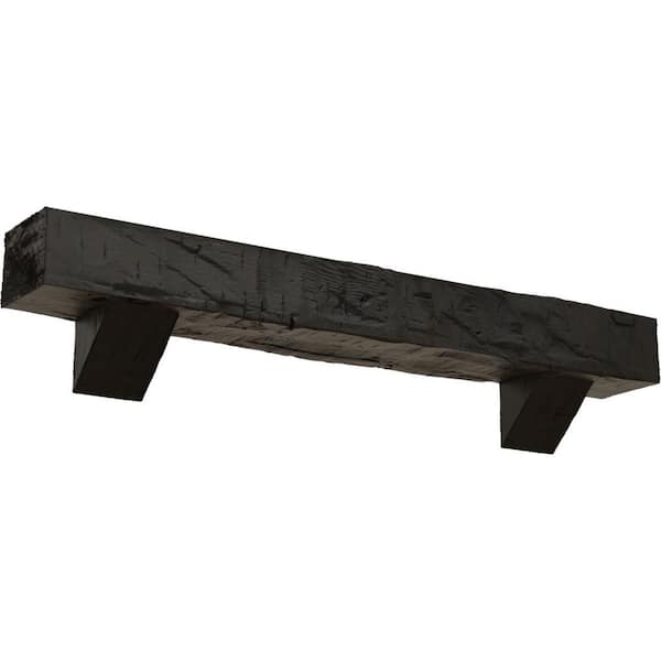 6 in. x 8 in. x 5 ft. Hand Hewn Faux Wood Fireplace Mantel Kit, Breckinridge Corbels, Burnished Cedar