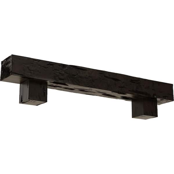 6 in. x 8 in. x 5 ft. Pecky Cypress Faux Wood Fireplace Mantel Kit, Alamo Corbels, Premium Walnut
