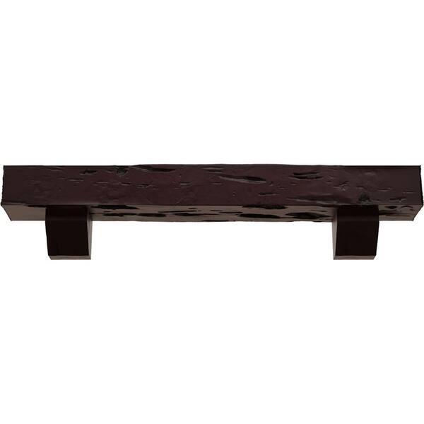 6 in. x 8 in. x 5 ft. Pecky Cypress Faux Wood Fireplace Mantel Kit, Ashford Corbels, Premium Cherry
