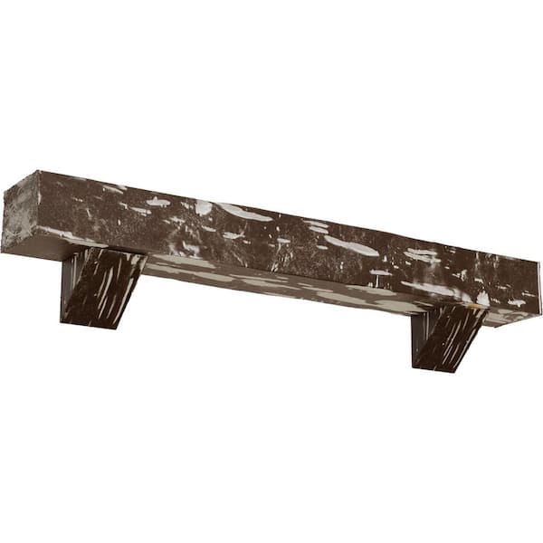 6 in. x 8 in. x 5 ft. Pecky Cypress Faux Wood Fireplace Mantel Kit, Breckinridge Corbels, Vintage Mahogany