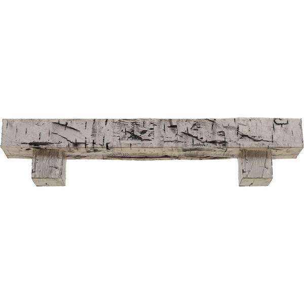 6 in. x 8 in. x 6 ft. Hand Hewn Faux Wood Beam Fireplace Mantel Kit, Alamo Corbels, Burnished Pine