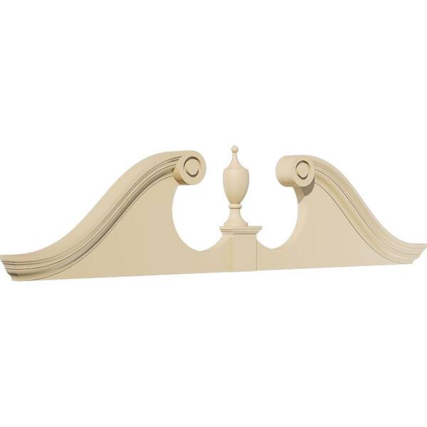 62-in W x 15-1/2-in H x 2-3/4-in P Rams Head Signature Urethane Pediment (Urn Ships Unattached in Box), Primed Tan