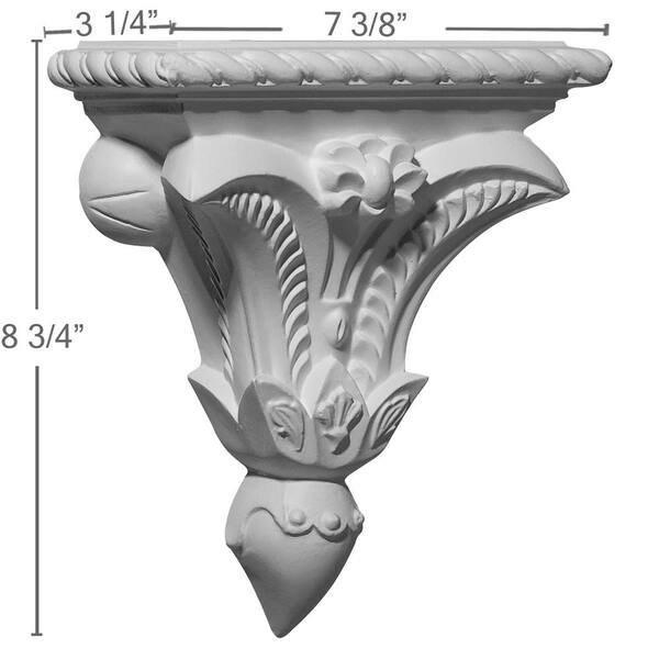 7-3/8 in. x 3-1/4 in. x 8-3/4 in. Primed Polyurethane Pompeii Corbel
