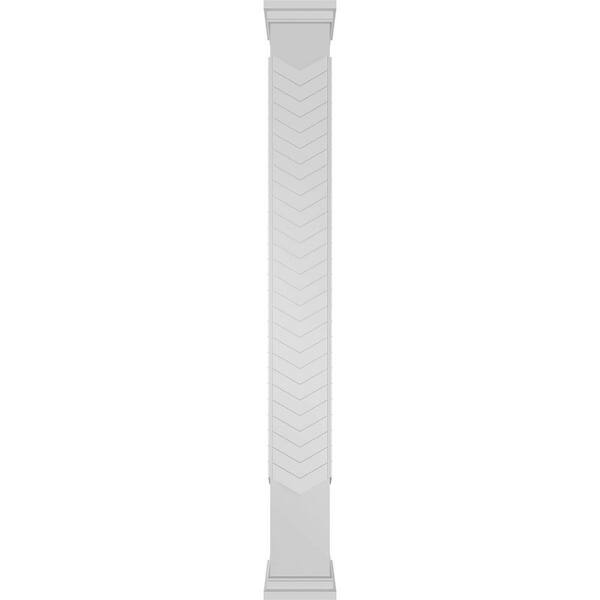 7-5/8 in. x 9 ft. Premium Square Non-Tapered Chevron Modern Fretwork PVC Column Wrap Kit w/Prairie Capital and Base