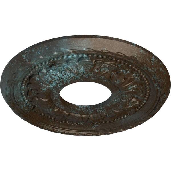 7/8" x 11-3/8" x 11-3/8" Polyurethane Palmetto Ceiling Medallion, Bronze Blue Patina