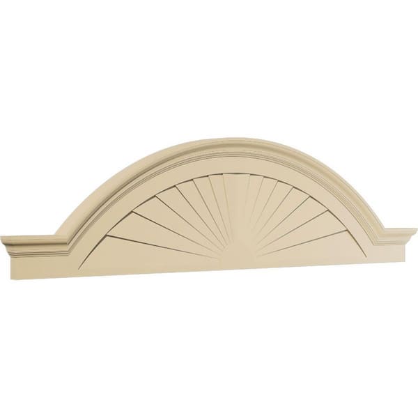 76 in. W x 20 in. H x 2-1/2 in. P Segment Arch W/Flankers Sunburst Signature Urethane Pediment, Primed Tan