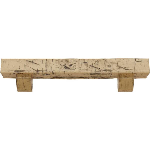 8 in. x 10 in. x 3 ft. Hand Hewn Faux Wood Fireplace Mantel Kit, Ashford Corbels, Natural Pine