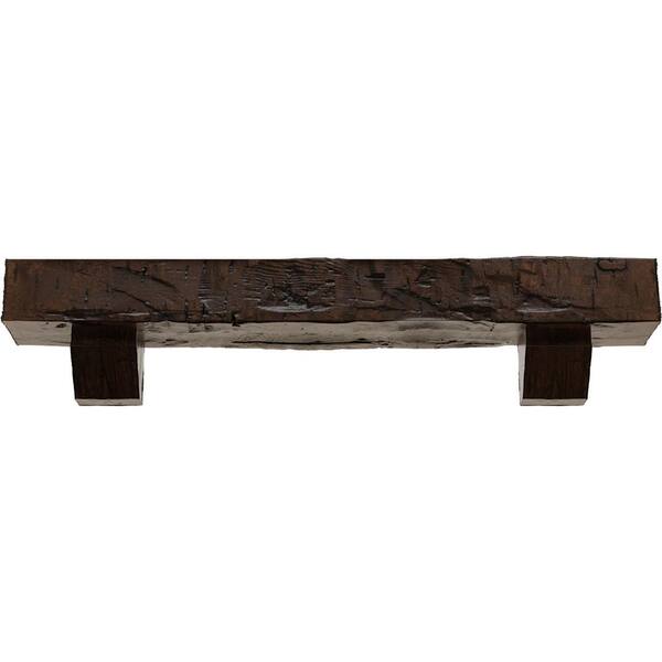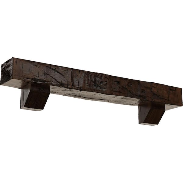 8 in. x 10 in. x 4 ft. Hand Hewn Faux Wood Fireplace Mantel Kit, Ashford Corbels, Premium Aged