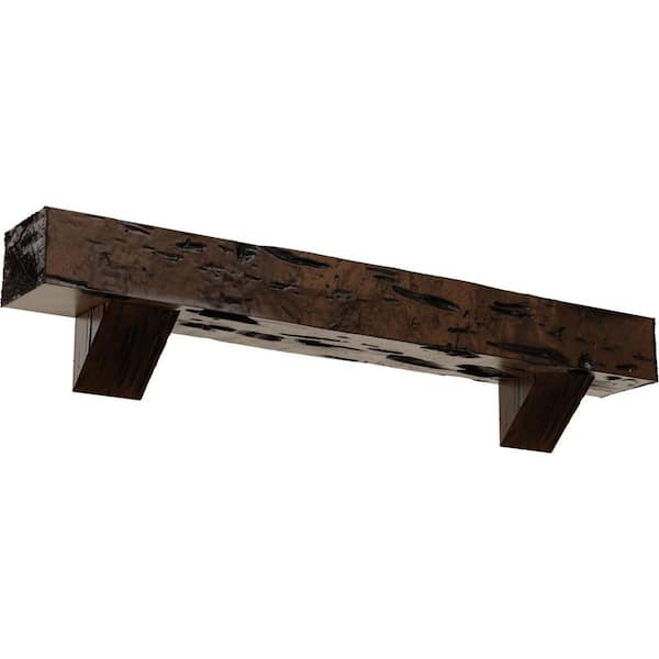 8 in. x 10 in. x 4 ft. Pecky Cypress Faux Wood Fireplace Mantel Kit, Breckinridge Corbels, Premium Aged