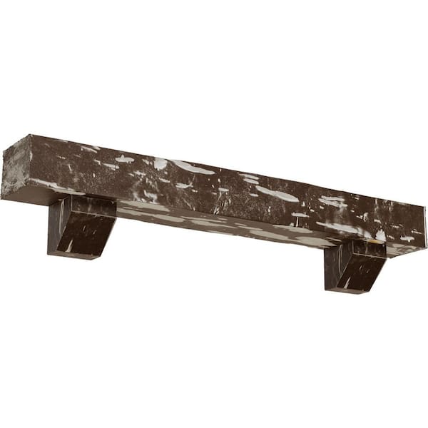 8 in. x 10 in. x 6 ft. Pecky Cypress Faux Wood Fireplace Mantel Kit, Ashford Corbels, Vintage Mahogany