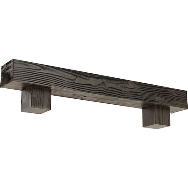 8 in. x 10 in. x 6 ft. Sandblasted Faux Wood Fireplace Mantel Kit, Alamo Corbels, Burnished Honey Dew