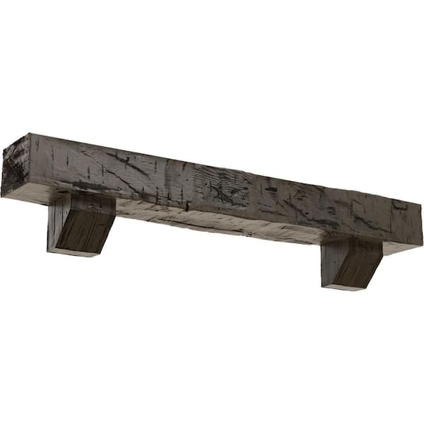 8 in. x 10 in. x 7 ft. Hand Hewn Faux Wood Fireplace Mantel Kit, Ashford Corbels, Burnished Honey Dew