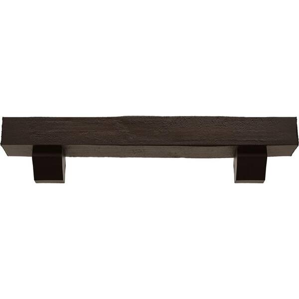 8 in. x 12 in. x 4 ft. Rough Cedar Faux Wood Fireplace Mantel Kit, Ashford Corbels, Natural Mahogany