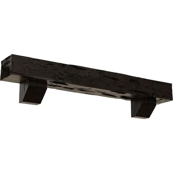 8 in. x 12 in. x 5 ft. Pecky Cypress Faux Wood Fireplace Mantel Kit, Ashford Corbels, Premium Walnut
