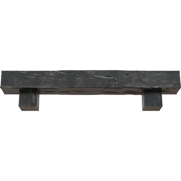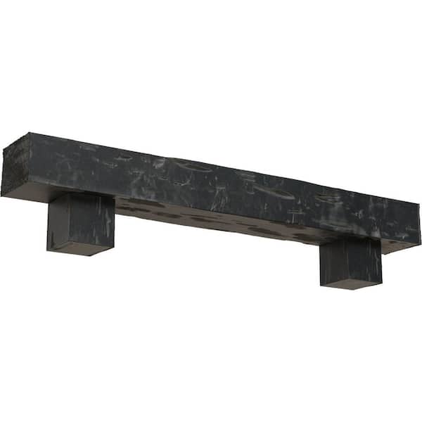 8 in. x 12 in. x 5 ft. Pecky Cypress Faux Wood Fireplace Mantel Kit with Alamo Corbels, Aged Ash