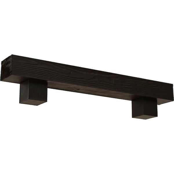 8 in. x 12 in. x 5 ft. Sandblasted Faux Wood Fireplace Mantel Kit, Alamo Corbels, Natural Ash