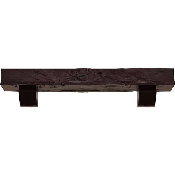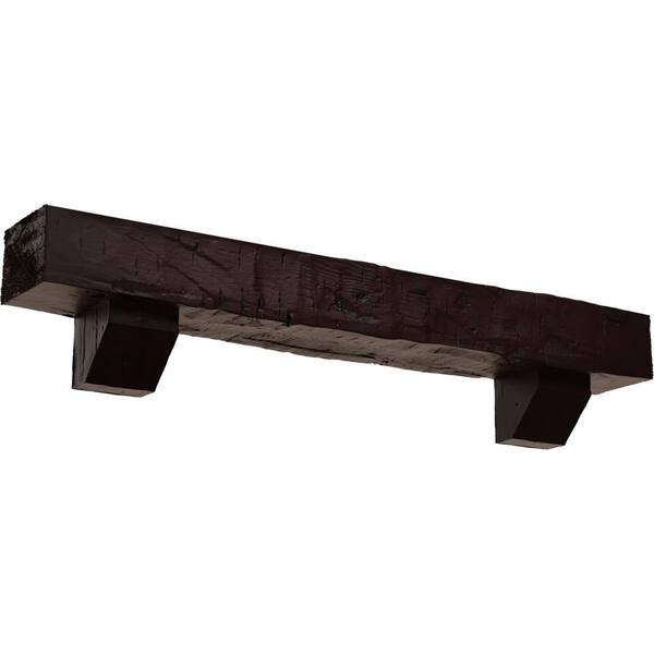 8 in. x 12 in. x 6 ft. Hand Hewn Faux Wood Fireplace Mantel Kit, Ashford Corbels, Premium Cherry