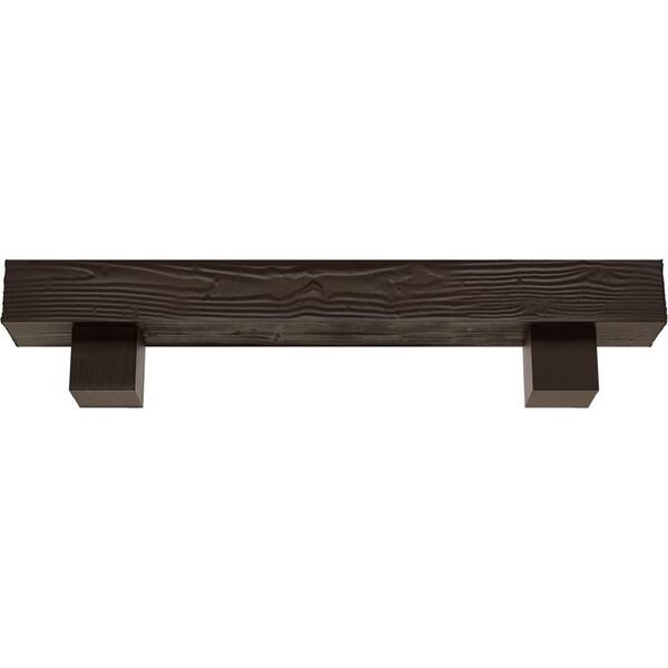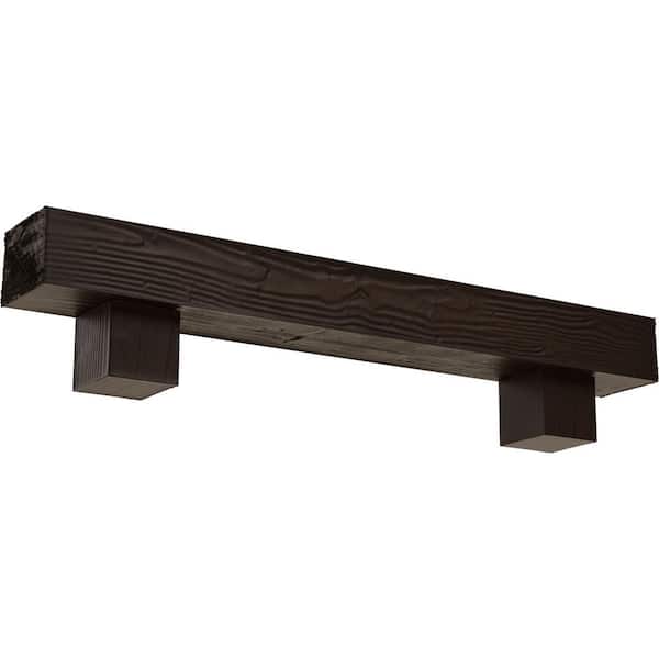 8 in. x 12 in. x 6 ft. Sandblasted Faux Wood Fireplace Mantel Kit, Alamo Corbels, Natural Mahogany