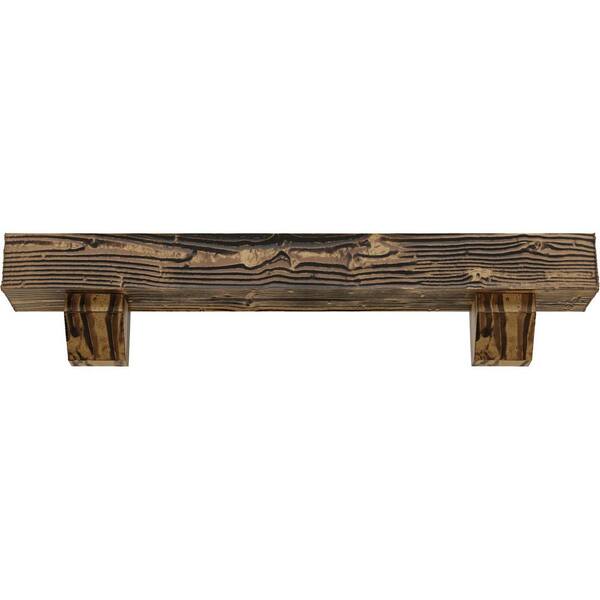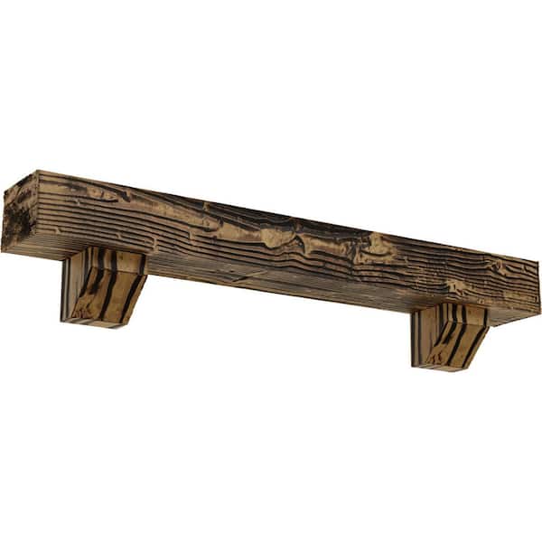 8 in. x 12 in. x 6 ft. Sandblasted Faux Wood Fireplace Mantel Kit, Ashford Corbels, Natural Golden Oak