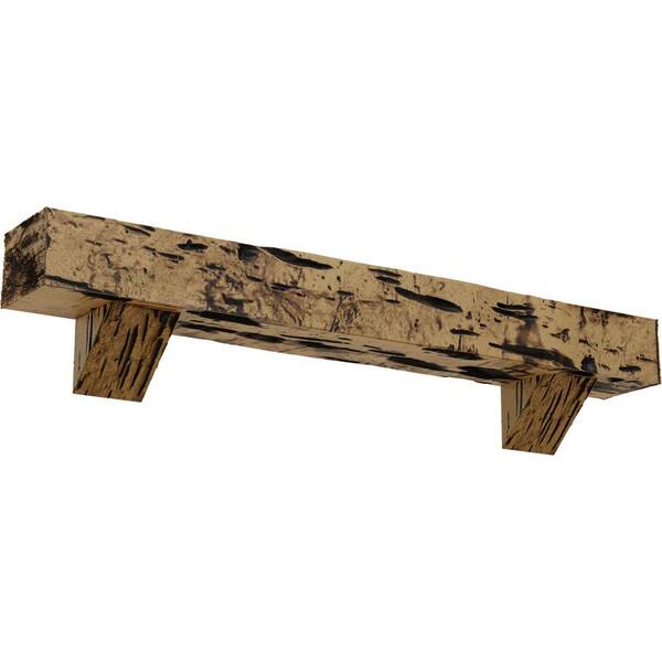 8 in. x 12 in. x 7 ft. Pecky Cypress Faux Wood Fireplace Mantel Kit, Breckinridge Corbels, Natural Golden Oak