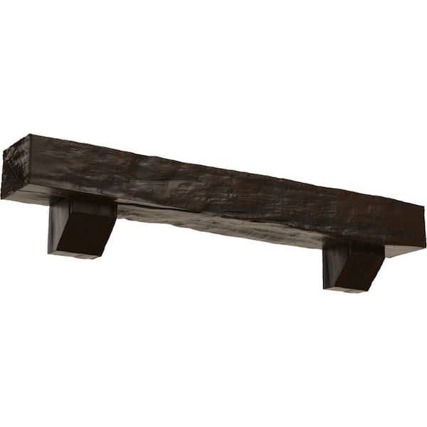 8 in. x 12 in. x 7 ft. Riverwood Faux Wood Fireplace Mantel Kit, Ashford Corbels, Burnished Mahogany