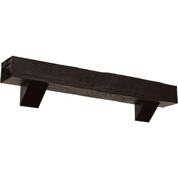 8 in. x 12 in. x 7 ft. Rough Sawn Faux Wood Fireplace Mantel Kit, Breckinridge Corbels, Natural Mahogany