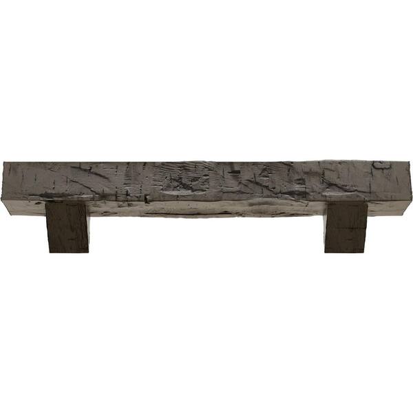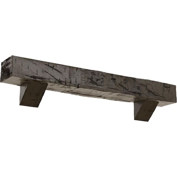 8 in. x 8 in. x 4 ft. Hand Hewn Faux Wood Fireplace Mantel Kit, Breckinridge Corbels, Burnished Honey Dew