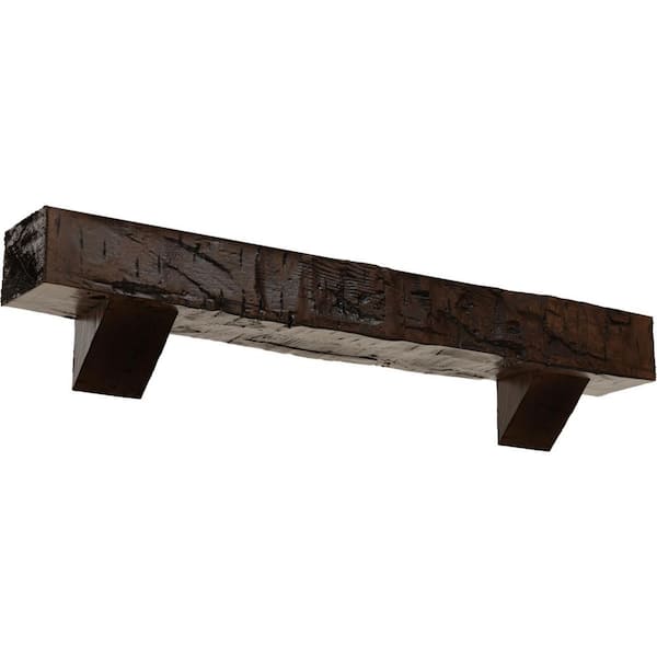 8 in. x 8 in. x 4 ft. Hand Hewn Faux Wood Fireplace Mantel Kit, Breckinridge Corbels, Premium Aged