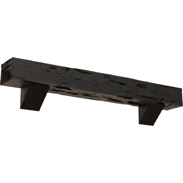 8 in. x 8 in. x 4 ft. Pecky Cypress Faux Wood Fireplace Mantel Kit, Breckinridge Corbels, Burnished Cedar