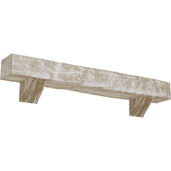 8 in. x 8 in. x 5 ft. Riverwood Faux Wood Fireplace Mantel Kit, Breckinridge Corbels, White Washed