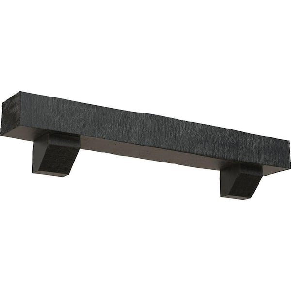 8 in. x 8 in. x 5 ft. Rough Cedar Faux Wood Fireplace Mantel Kit, Ashford Corbels, Aged Ash