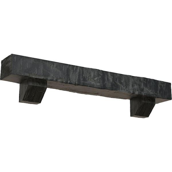 8 in. x 8 in. x 6 ft. Hand Hewn Faux Wood Fireplace Mantel Kit, Ashford Corbels, Aged Ash
