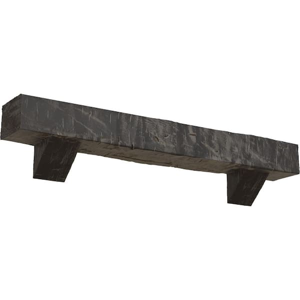 8 in. x 8 in. x 7 ft. Hand Hewn Faux Wood Fireplace Mantel Kit with Breckinridge Corbels, Aged Cedar