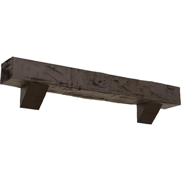 8 in. x 8 in. x 7 ft. Hand Hewn Faux Wood Fireplace Mantel Kit with Breckinridge Corbels, Natural Honey Dew