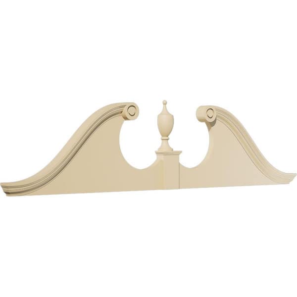 84 in. W x 21 in. H x 2-3/4 in. P Rams Head Signature Urethane Pediment (Urn Ships Unattached in Box), Primed Tan