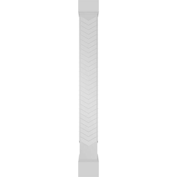 9-5/8 in. x 8 ft. Premium Square Non-Tapered Chevron Modern Fretwork PVC Column Wrap Kit with Mission Capital and Base