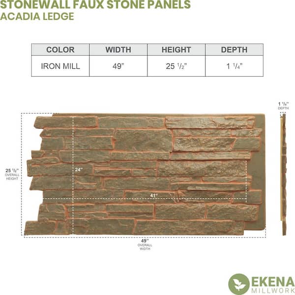 Acadia Ledge 49 in. x 1 1/4 in. Iron Mill Stacked Stone, StoneWall Faux Stone Siding Panel