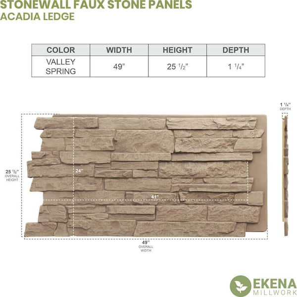 Acadia Ledge 49 in. x 1 1/4 in. Valley Spring Stacked Stone, StoneWall Faux Stone Siding Panel