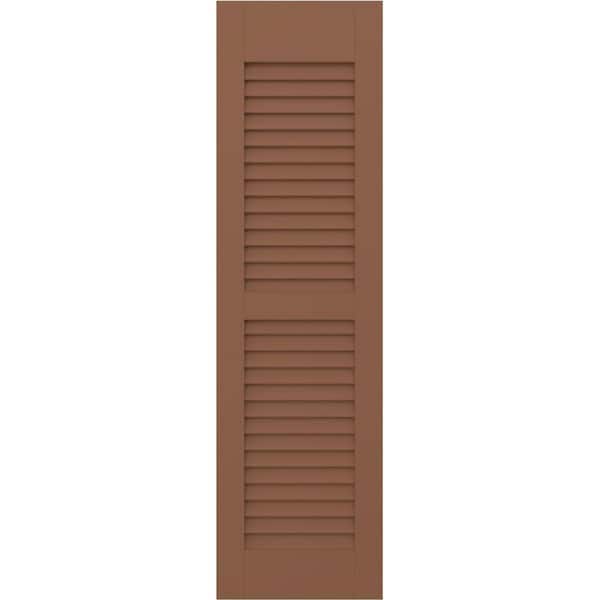 Americraft 12 in. W x 49 in. H 2-Equal Louver Exterior Real Wood Shutters Pair in Burnt Toffee