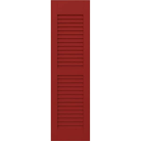 Americraft 15 in. W x 61 in. H 2-Equal Louver Exterior Real Wood Shutters Per Pair in Fire Red