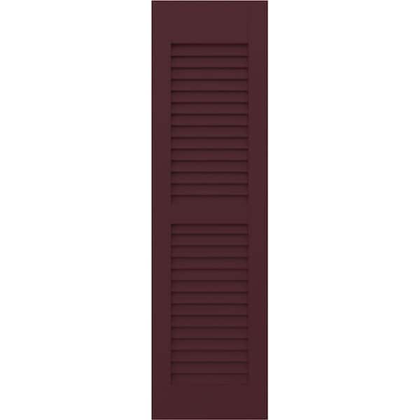Americraft 18 in. W x 49 in. H 2-Equal Louver Exterior Real Wood Shutters Pair in Wine Red