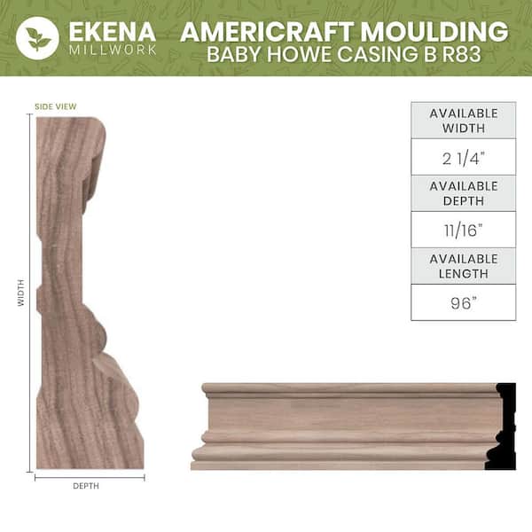 BRB3 0.69 in. D x 2.25 in. W x 96 in. L Wood (White Oak) Baby Howe Casing Moulding