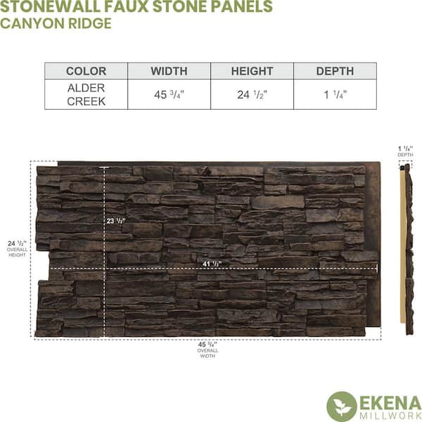 Canyon Ridge 45 3/4 in. x 1 1/4 in. Alder Creek Stacked Stone, StoneWall Faux Stone Siding Panel