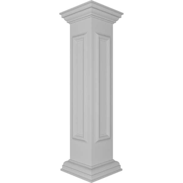 Corner 40 in. x 8 in. White Box Newel Post with Panel, Flat Capital and Base Trim (Installation Kit Included)