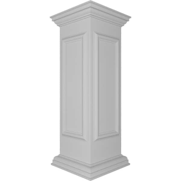 End 40 in. x 12 in. White Box Newel Post with Panel, Peaked Capital and Base Trim (Installation Kit Included)