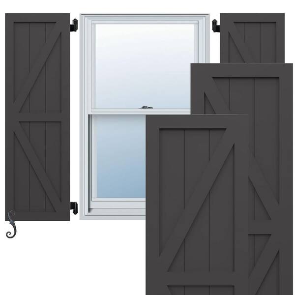 EnduraCore 2 Equal Panel Farmhouse 12 in. W x 58 in. H Composite Board and Batten Shutters Pair in Shadow Mountain
