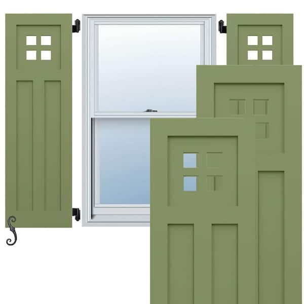 EnduraCore San Antonio Mission Style 15-in W x 58-in H Raised Panel Composite Shutters Pair in Moss Green