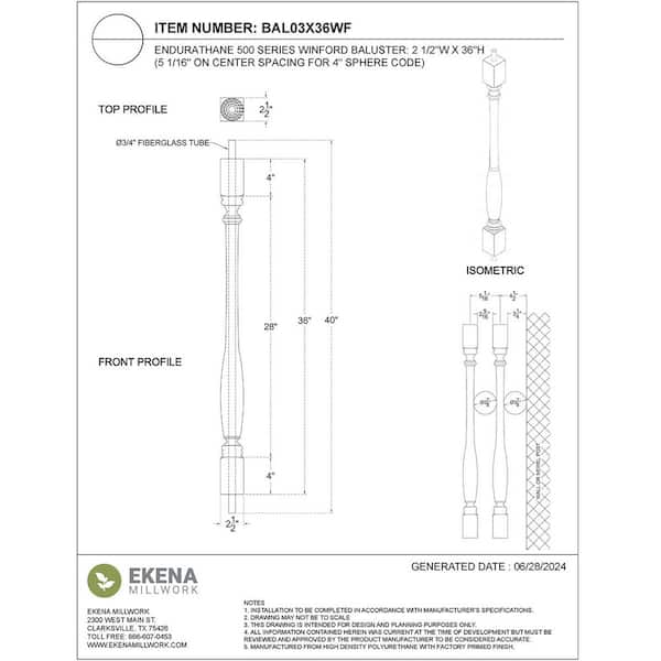 Endurathane 500 Series 36 in. H x 2.5 in. W White Resin Stair Baluster